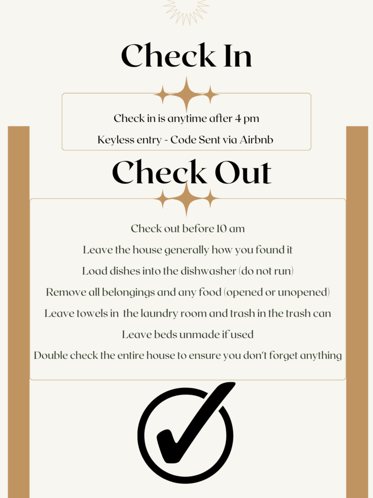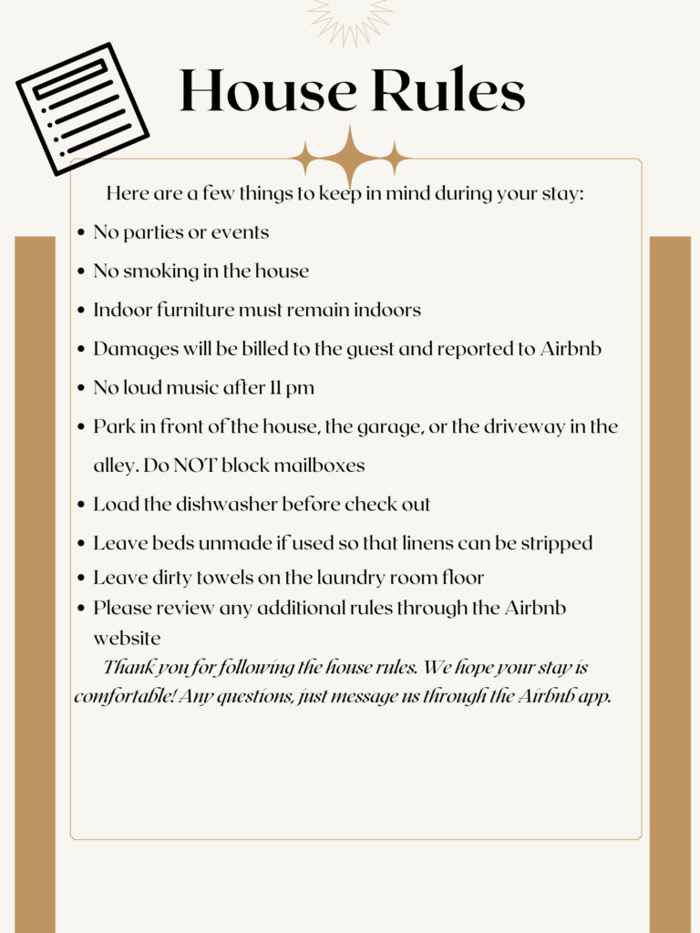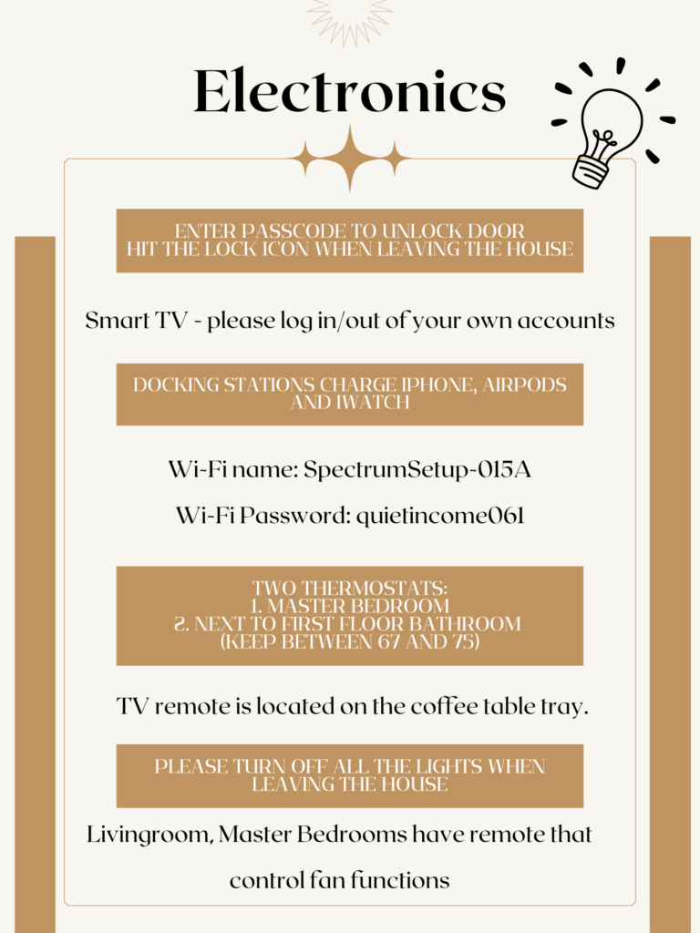 | Trash Location | Garage Door | Appliances |